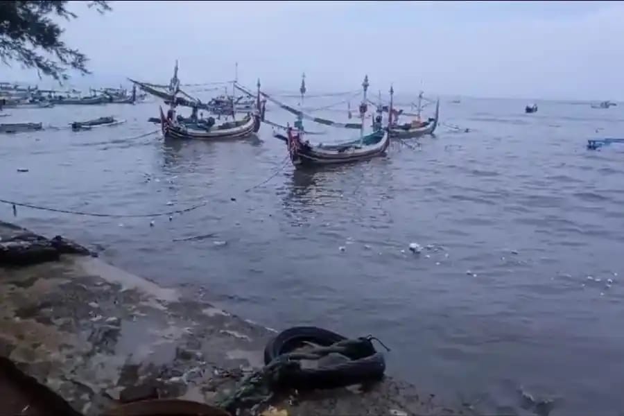 Tingginya ombak dan gelombang air laut menghantam bibir pantai dan pelabuhan setempat. Ketinggian mencapai 2-4 meter, hingga meluap ke permukiman warga.