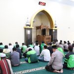 Salat gaib digelar di Masjid At Taqwa Polres Madiun seusai salat Ashar, Jum’at (29/8/2025). Kapolres Madiun AKBP Kemas Indra Natanegara, S.H., S.I.K., M.Si. tampak berdampingan dengan komunitas ojol Madiun di saf depan, mengikuti salat gaib yang berlangsung khidmat.