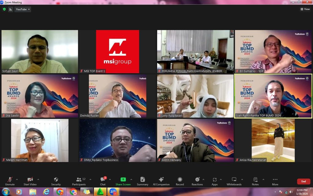Direksi didampingi Staf Perumda Perkebunan Kahyangan mengikuti penjurian TOP BUMD Awards 2024 bertempat diruang meeting kantor Direksi Selasa, 30 Januari 2024 jam 10.30 sampai dengan selesai yang dilaksanakan secara online/daring.
