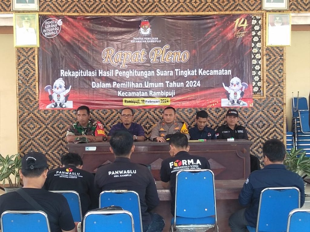 Termasuk menjaga dan memantau prose kegiatan rapat pleno terbuka penghitungan suara tingkat kecamatan. Camat Rambipuji Bapak Djoni Nurtjahjanto, S.H mengucapkan terima kasih kepada semua pihak yang telah membantu proses tahapan sampai selesai sehingga kegiatan bisa berjalan aman dan lancar dan mudah mudahan menghasilkan pemimpin yang amanah.