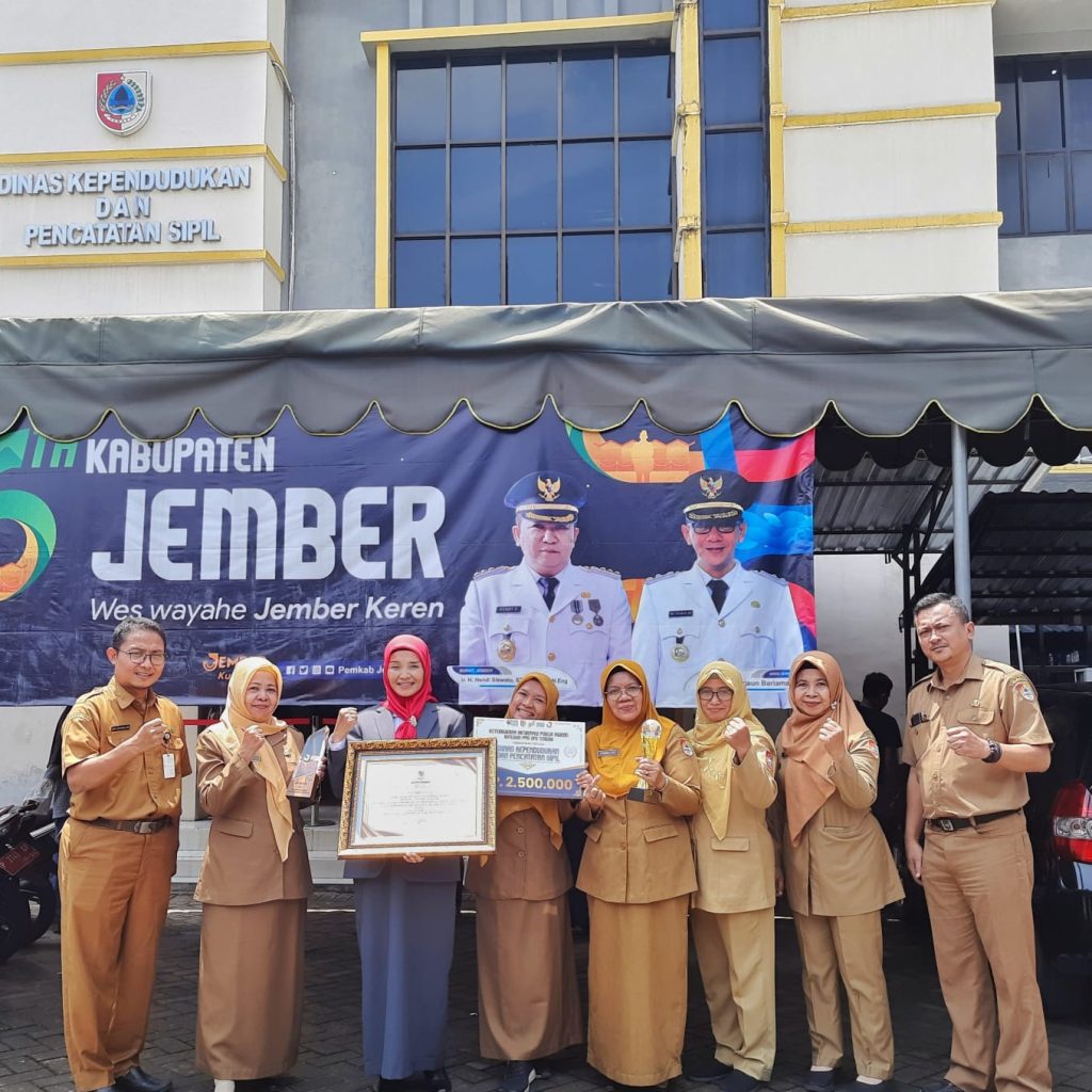 Suara Jember News, Jember – Dinas Kependudukan dan Pencatatan Sipil (Disdukcapil) Kabupaten Jember meraih dua penghargaan membanggakan.