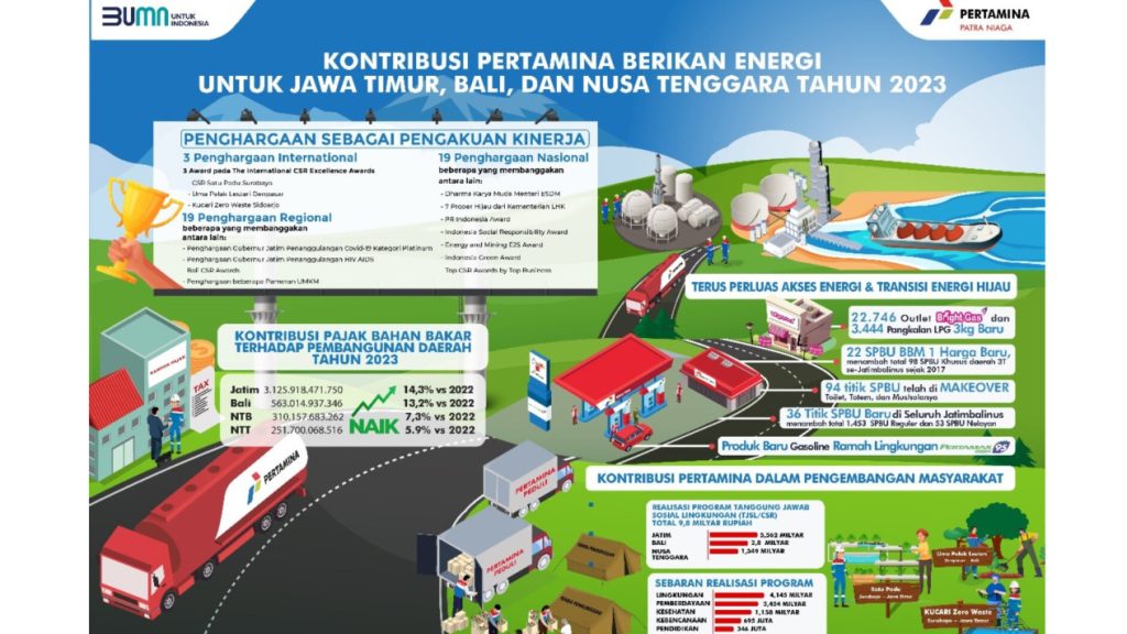 Sebagai jawaban tantangan green energy, hadirnya produk gasoline ramah lingkungan Pertamax Green 95 pertengahan tahun lalu untuk kendaraan yang ‘meminum’ BBM bensin (gasoline). Sedangkan kontribusi pajak bahan bakar terhadap pembangunan daerah, pada tahun 2023 mengalami kenaikan.