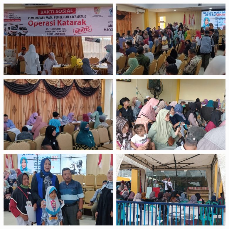 JEMBER, SuaraJember.com – Rumah Sakit Bina Sehat (RSBS) Jember menggelar operasi katarak, pembagian kacamata baca gratis,pembagian bola mata palsu gratis,kaki palsu gratis hingga operasi hernia gratis.